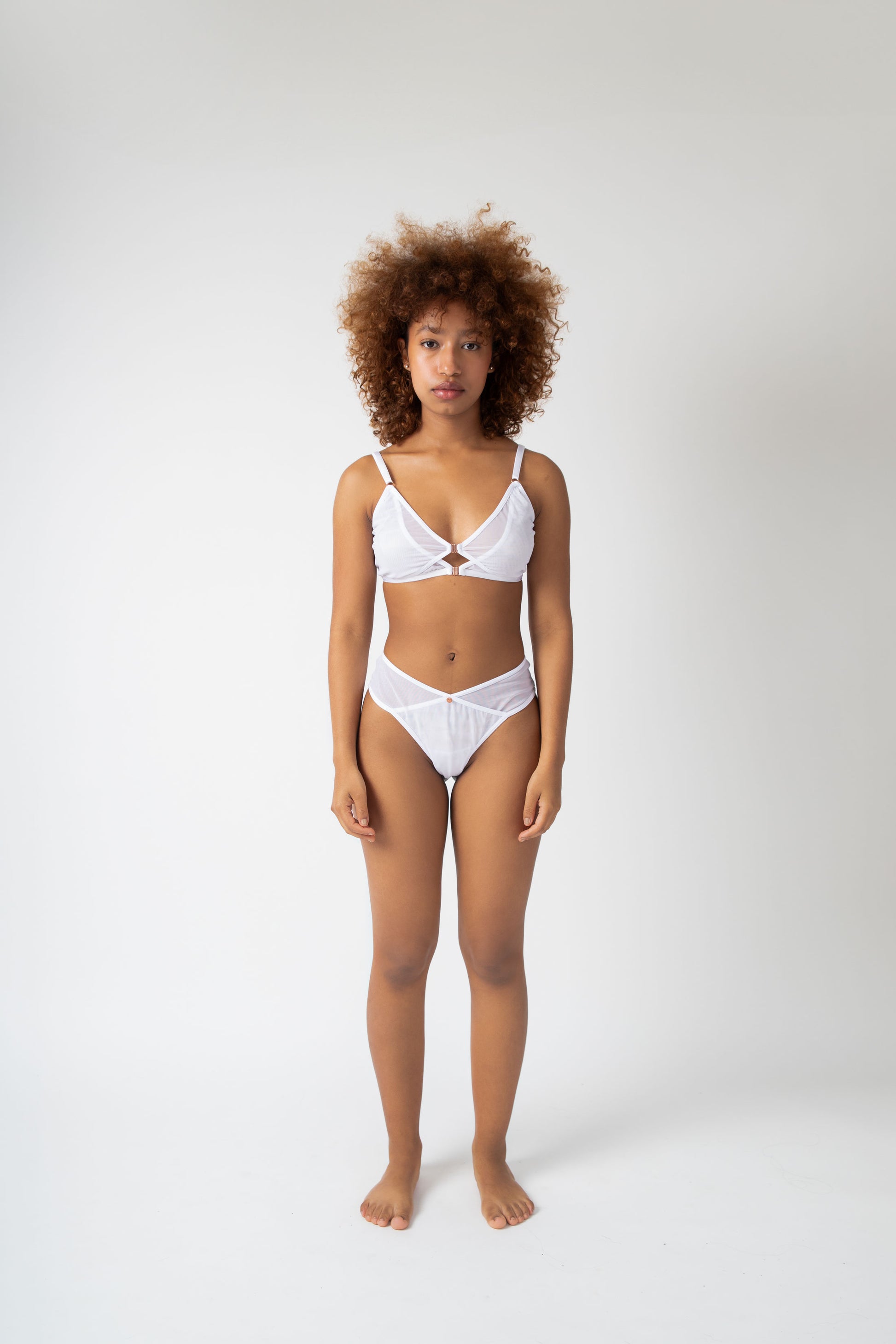 Tanga de talle medio cruzada, con tensor graduable en parte posterior, refuerzo 100%
